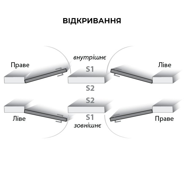 • Можливість монтажу з лівим чи правим, зовнішнім або внутрішнім відкриванням;