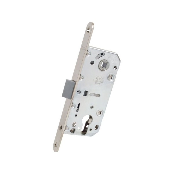 Механізм під циліндр  AGB Mediana Evolution для міжкімнатних дверей у кольорі нікель, виготовлений з високоміцного металу. Корпус механізму захищений від попадання пилу або стружки деревини. Монтаж простий і не вимагатиме спеціальних навичок. Реверсивність засувки дозволяє встановлювати його на двері лівого та правого відчинення.