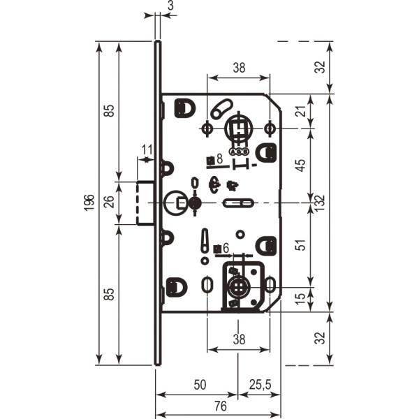 Механізм WC AGB " Evolution Mediana B011025023 для міжкімнатних дверей в колір латунь виготовлений з високоміцного металу. Корпус механізму захищений від попадання пилу або деревної стружки. Монтаж простий і не вимагає спеціальних навичок. Реверсивність засувки дозволяє встановлювати його на двері лівого і правого відкривання.