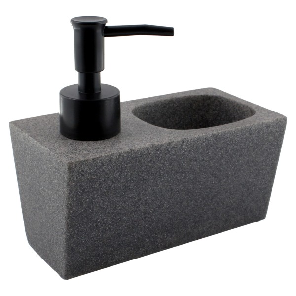 Практичний дует для вашої кухонної зони. Дозатор рідкого мила Arino — це вишукана сіра модель, що поєднує ємність для мийного засобу та зручне місце для губки. Таке поєднання звільняє простір та зберігає охайність біля раковини. Аксесуар виготовлений з полірезину — матеріалу, який завжди залишається комфортним і приємним на дотик. Його непориста, жорстка структура запобігає появі тріщин та захищає поверхню від шкідливих мікроорганізмів, гарантуючи гігієнічність. Настільна установка та елегантний дизайн дозволяють розмістити його будь-де, а компактні розміри 146х75х135 мм ідеально впишуться навіть у невелику робочу зону. Додайте функціональної естетики вашій кухні!